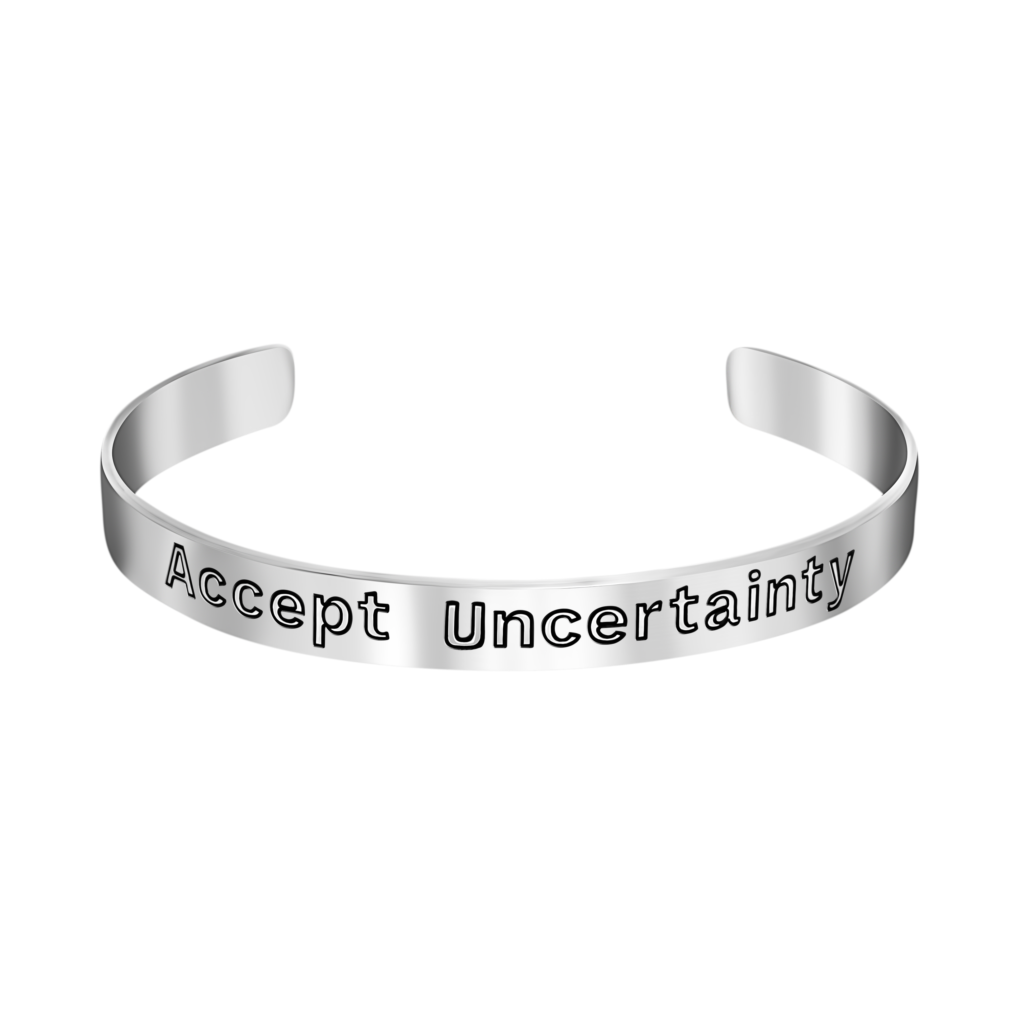 Silver 925 cuff bracelet with the strong meaning of Accept Uncertainty. Reminds us to move forward. The bracelet is for women and men.