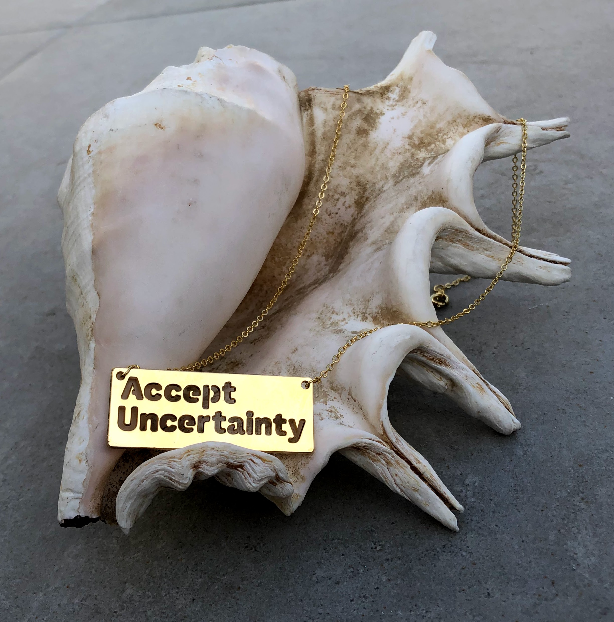 A very special and strong pendant that reminds us to feel and Accept Uncertainty. It’s powerful with presents and gives you the way to your inner compass