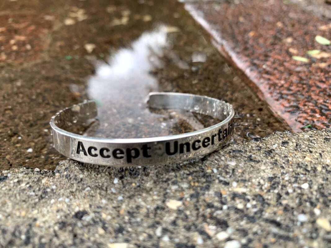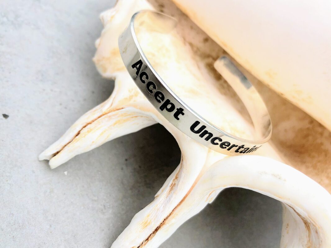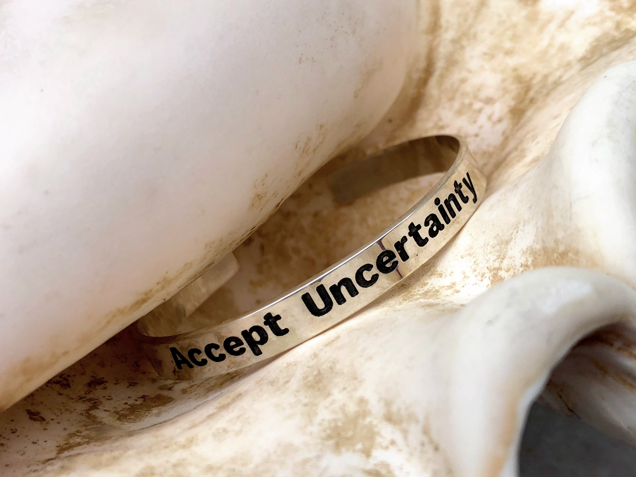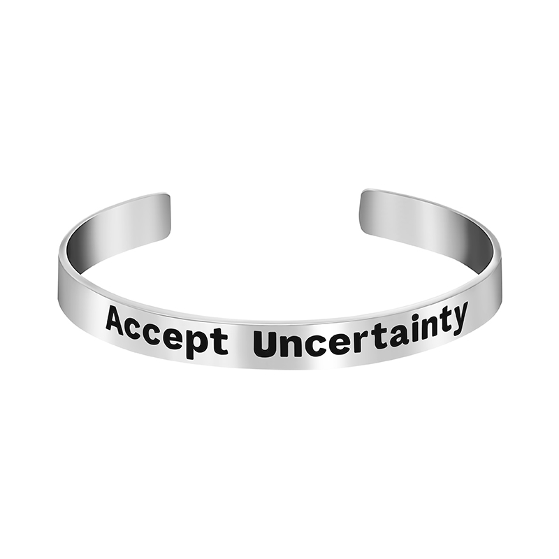 צמיד כסף 925, מתאים לנשים וגברים, עם כיתוב מודגש של קבלת אי הוודאות. תכשיט יפה שמתאים לענוד תמיד.